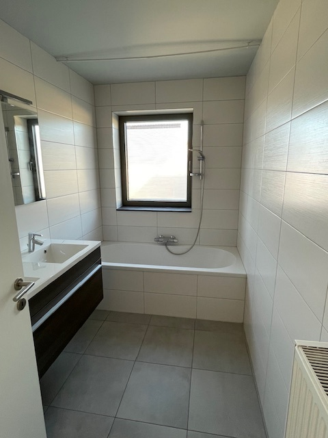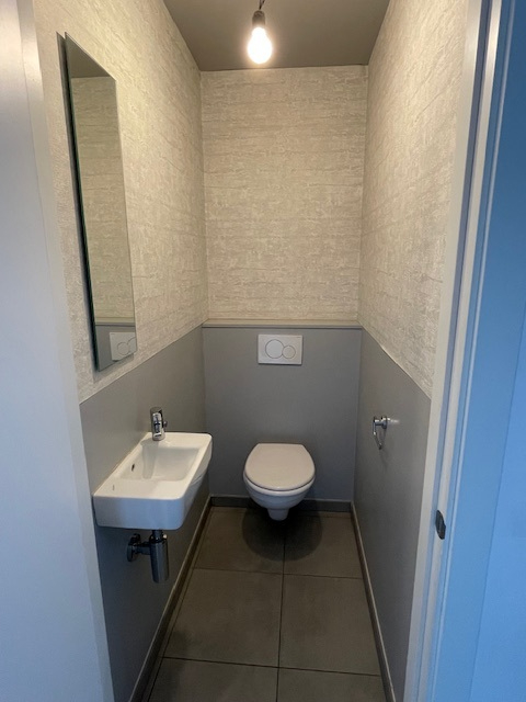 De indeling omvat een inkomhal met apart toilet, lichtrijke leefruimte met open keuken die voorzien is van alle comfort en moderne toestellen.